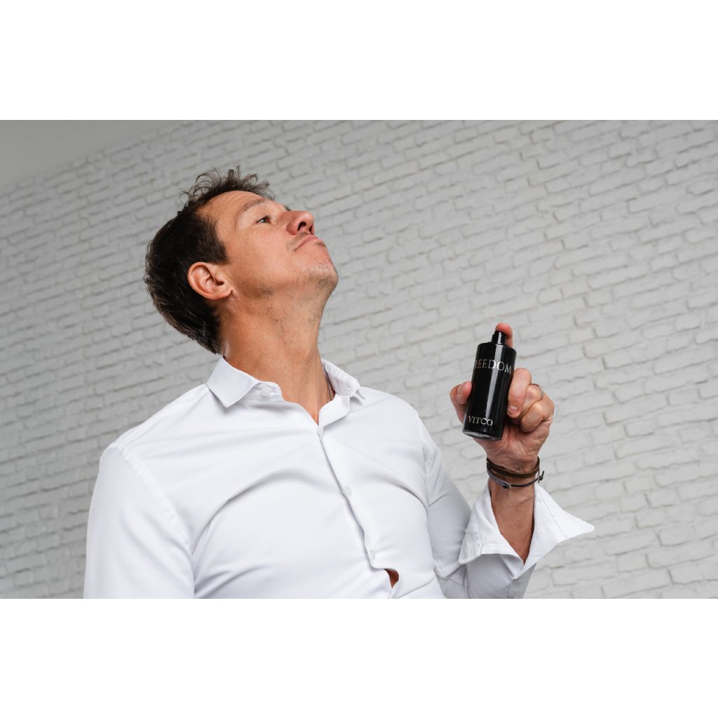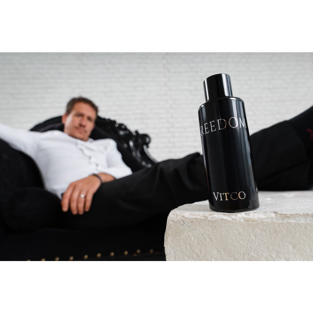 Vitco Freedom je vůní odvahy, svobody a přitažlivé energie. Je ideální pro muže, kteří nejsou svázáni očekáváními okolí a vědí, co chtějí. Jsou muži, kteří nepotřebují mluvit nahlas. Kteří nečekají na potvrzení, nespěchají a nic nedokazují. Jsou přirozeně jiní. Svobodomyslní, v klidu. A právě pro ně vznikl Vitco Freedom – vůně, která nedobývá, ale přitahuje.