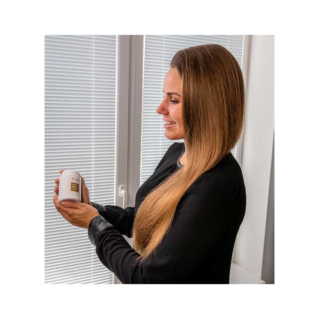 Problémy s vypadáváním nebo nedostatečnou kvalitou vlasů jsou někdy způsobeny například nedostatečnou výživou vlasové pokožky. Náš produkt VitcoHair dodá pokožce všechny potřebné minerály, vitamíny, kolagen nebo rostlinné extrakty atd., které jsou jednou z nejdůležitějších součástí pro správný růst kvalitních vlasů. Pivovarské kvasnice dodávají potřebné vitaminy B, bílkoviny a minerály. Dále naše kapsle obsahují vysoký podíl křemíku díky přesličce polní. Mimo tyto složky Vám kapsle Vitco Hair nabízí i kolagen, hyaluronát, měď, selen nebo biotin.