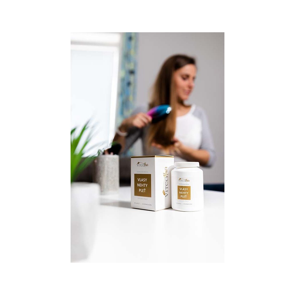 Produkt VitcoHair je český a čistě přírodní produkt, který se stará o kvalitu Vašich vlasů a nehtů. Díky jeho jedinečnému zcela přírodnímu složení budou Vaše vlasy a nehty po jeho užívání opět silné, pevné a zdravé.