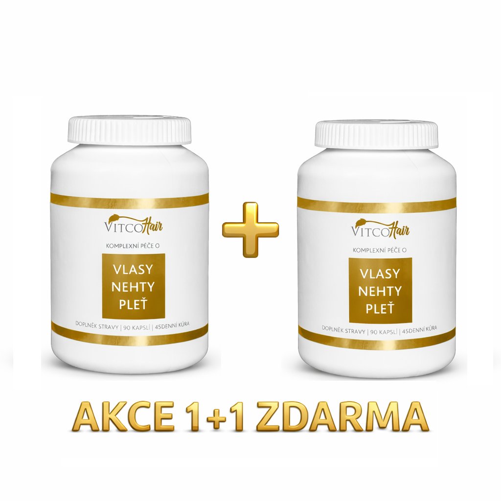 Akce 1+1 ZDARMA Kapsle VitcoHair pro dokonalé vlasy, nehty a pleť - 90 denní kúra
